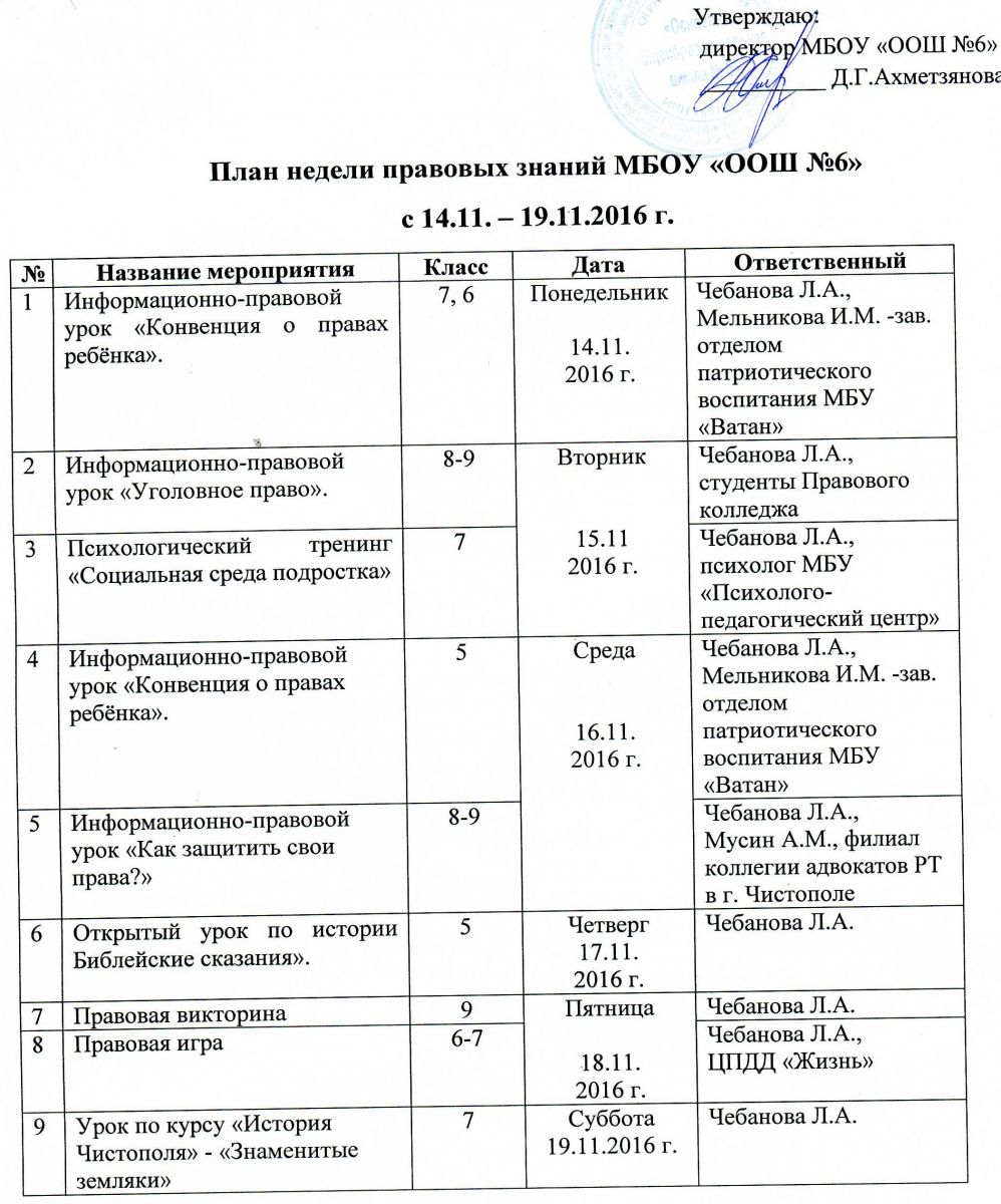 ПЛАН недели права в школе