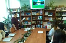 В школьной библиготеке прведена читательская конференция с учащимися 11 классов "Туган ягым- яшел бишек"- "Родимый край-зеленая моя колыбель" (учитель Закирова Ф.Г.), посвященная 120 летию татарского писателя Гумара Баширова и в рамках Года родных языков и народного единства.