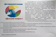 31 мая 2019 года с 9.00 до 13.00 запланировано проведение Дня правовой помощи гражданам "Детский вопрос"