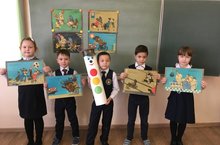 Классный руководитель Александрова Т.А. провела для учащихся 1 А класса классный час в игровой форме. Ребята познакомились с правилами дорожного движения. С помощью загадок, стихов, макетов и подвижных игр юные школьники изучили и закрепили по какой части тротуара нужно ходить и как правильно переходить дорогу; как необходимо обходить автобус, троллейбус и трамвай при переходе проезжей части. Узнали много нового о безопасном поведении на дорогах. Мероприятие проходило в веселой и непринужденной обстановке. Использовалось музыкальное сопровождение из кинофильма «Буратино», «Красная шапочка».