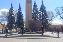 Учащиеся 10 класса несут "Вахту Памяти" около вечного огня.