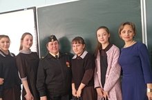 В рамках недели истории и обществознания в школьной библиотеке прошёл Урок мужества "Армия в жизни одной семьи" с приглашением Пасмуровой Н.М., почти четверть века прослужившей на Тихоокеанском флоте. Наталья Михайловна рассказала учащимся 9А и 9В классов (учитель истории Однакина С.А.) о членах своей семьи, начиная с прадедов, отдавших долг Родине.
