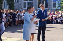 Сегодня в нашей школе прошла торжественная линейка, посвящённая Дню знаний! Директор школы Бакалдина Л.В. и присутвующие гости: начальник отдела молодёжи ИК ЧМР Купцова О.В., директор ЧФ КИУ Добронравова О.В., председатель ТОС №4 Хасанова С.М. поздравили ребят с новым 2017-2018 учебным годом, пожелали отличных успехов в учебе и всего самого наилучшего!