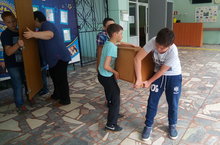 Второй день лагеря. Несмотря на плохую погоду, настроение не падает ведь у нас много дел в школе. Например, подготовить помещения к новому учебному году.