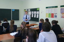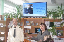 В школьной библиотеке состоялась встреча учащихся 6В и 7А классов с участником боевых действий в Афганистане Ильиным Виктором Фёдоровичем и кадетами КШИ им. Героя Советского союза Кузьмина С.Е. Кадеты представили собравшимся литературно-музыкальную композицию "Есть такая профессия - Родину защищать", а Ильин В.Ф. рассказал о своём боевом пути.
