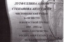 С 24.04. - 26.04 в г. Елабуга РТ проходил финал первенства Республики татарстан по бадминтону, где наши ученицы 8 Б класса из 1200 участников заняли 3 место в возрастной группе 2000-2001 г.р. и Гущин Иван, ученик 5 Б класса - 1 место в возрастной группе 2002-2003 г.р.