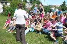 В пришкольном лагере "Юные таланты" для ребят третьего и четвертого отрядов казакова С. В. провела спортивные соревнования "Экологические забеги". Ребята соревновались в меткости, беге.