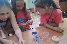 Ребята из трудового лагеря "Лидер" занялись бисероплетением.
