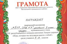 Поздравляем творческий коллектив МОУ "СОШ №7", занявший 2 место, призёра муниципального этапа VIII республиканского конкурса школьных Театров здоровья "Игры, которые мы заслужили вместе с тобой!" среди учащихся 9-11 классов. Бабаев Вадим, Галлямова Динара, Гилязов Рамис, Петрунина Юля, Исмагилова Алина, Новикова Илюза, Насибуллин Ильназ, Морозова Анна, Отбоев Коля и Сарбаев Саша, а также Тимошкина Марина Владимировна- ПОЗДРАВЛЯЕМ!!!