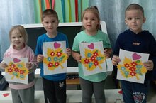 Преддверие дня Дошкольного работника воспитанниками сделали аппликацию, поздравительные открытки./ Тәрбиячеләр көне алдыннан, балалар котлау открыткасы ясалдылар.