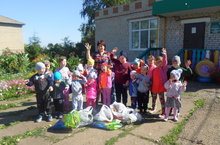 Без чисталыкны яратабыз! 14.09.2018Без инде хәзер зурларКүп эшли безнеӊ куллар.Бакчабызныӊ чисталыгынҺәр көн карап торабызБакчада төшкән чүпләрнеБик тиз җыеп куябыз