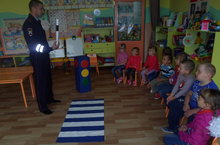 Сегодня наш детский сад посетил инспектор по пропаганде ОГИБДД ОМВД России по Чистопольскому району Воляков В.В., он провел беседу с воспитанниками по соблюдению правил дорожного движения, объяснил как вести себя в транспорте, провел опрос по знанию дорожных знаков.