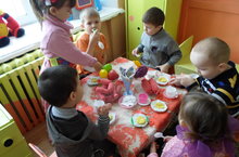 Сөйләм теле «Кунак булсаӊ тыйнак бул» исемле проект буенча, шогель үткәрелде. Балалар үзләре табын әзерләделәр. Хуҗабикә кунакларны өстәл артына чакырып төрле сыйлар белән сыйлады. Балаларда кунаклар белән аралашу, үз-үзеӊне тоту кагыйдәләре ныгытылды. Кунакларга хөрмәт күрсәтү кагыйдәләре үзләштеренде.