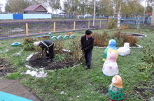 Сегодня в детском саду состоялся очередной средник по уборке территории.
