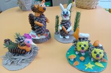 Осенние поделки из еловых и сосновых шишек./ Чыршы һәм нарат күркәләреннән көзге эшләнмәләр.