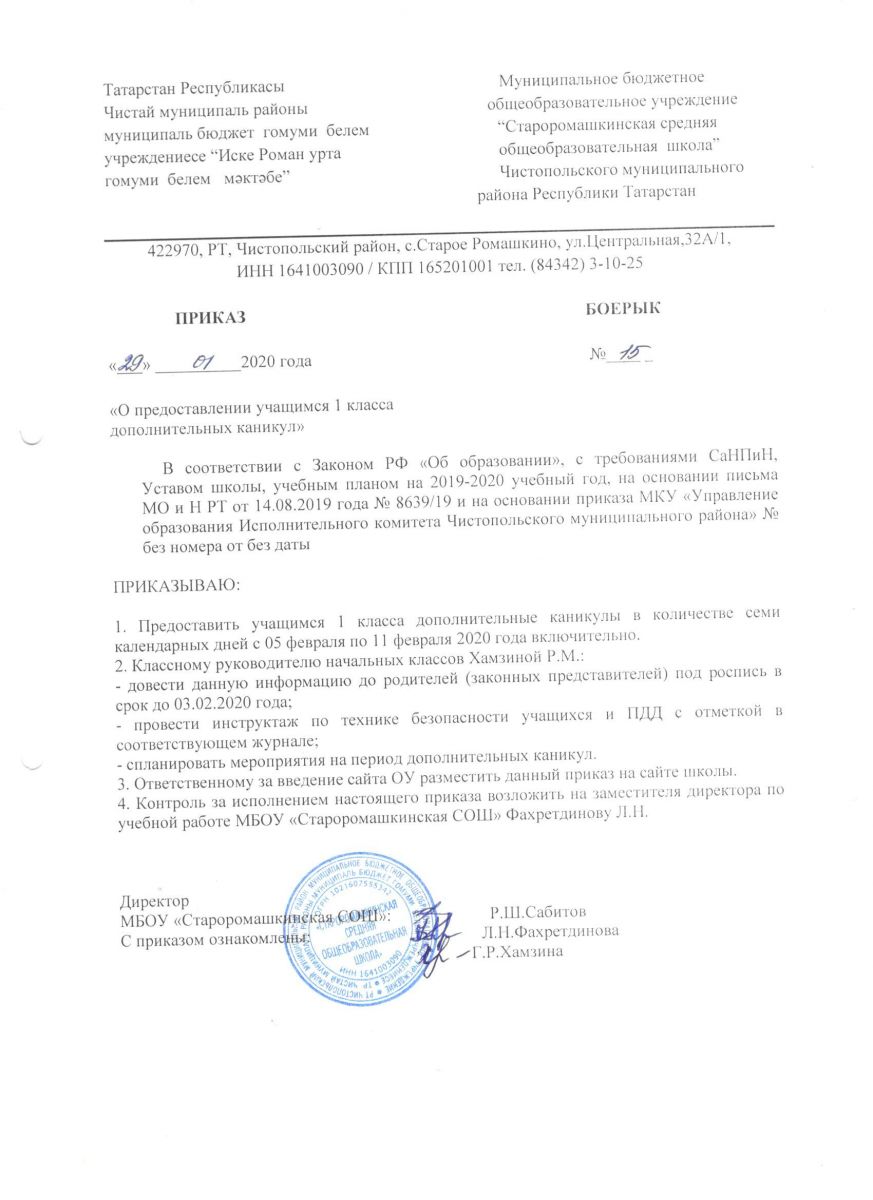 Муниципальное бюджетное общеобразовательное учреждение «Староромашкинская средняя общеобразовательная школа» Чистопольского муниципального района РТ/Татарстан Республикасы Чистай муниципаль районы "Иске Роман урта гомуми белем мәктәбе" муниципаль бюджет гомуми белем учреждениесе