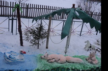 Нинди генә әкият герое юк монда. Кыш Бабай, Кар кызы, куян, төлке, җәйге күл буе дисеңме, аю, керпе... Аларны санап бетерерлек тә түгел. Тырышып бердәм булып эшләгәндә генә шундый хезмәт җимешенә ирешеп була.