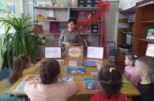 Вначале мероприятия методист библиотеки познакомила детей с биографией писателя . Ребята узнали много интересных эпизодов из его жизни, о том, как были написаны некоторые сказки.