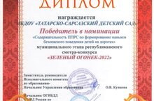 Мы победители в номинации "Содержательность ППРС по формированию навыков безопасного поведения детей на дорогах" муниципального этапа республиканского смотри-конкурса "Зеленый огонек-2022"