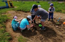 Дети старше-подготовительной группы во время дневной прогулки собирали семена цветов.