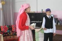 На празднике Дня матери учащиеся 5-6 классов- члены школьного театрального кружка "Огни рампы"