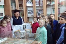 Экскурсия в школьном музее по экспозиции, открытой в 2018 году Арсланову З.М., «По следам подвига…».