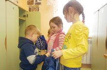 Сегодня, в первый день акции во всех разновозрастных группах нашего детского сада прошли беседы "Что такое доброта?". Ребята старшей группы задались вопросом: "Какой добрый поступок мы можем совершить?". Каждый высказывал свое мнение. Наконец решили взять "шефство" над малышами и начать с того, чтобы помогать одеваться на прогулку.