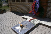 В вестибюле нашего детского сада мы создали уютный уголок под названием "Дружный дворик". Во дворе за одним столом сидят друг против друга татарская и чувашская семьи. В его создании участвовали все: воспитатели, родители, бабушки, дедушки, детишки. При создании композиции были использованы экологически чистые материалы: дерево, бумага, ткань, искусственные цветы, ветка яблони. Детские поделки: арбузики, яблоки, подсолнухи, сушки из пластилина, сделанные на кружке "Умелые ручки".