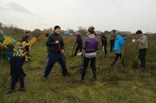 Сегодня учащиеся 9 и 11 классов посадили 120 саженцев деревьев сосны, берёзы и осины по побережью искусственного водоёма села.