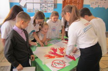 В пилотной школе активисты Российского движения школьников и команда SMS-дети «Неотложка» провели акцию "Мы против СПИДа". Детям раздали красные ленточки - символ борьбы со СПИДом, рассказали о вреде СПИДа,оформили плакат "Стоп СПИД»