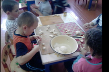 С детьми делали амулеты,рыбок,кондитерские изделия для игр.