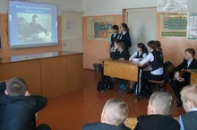 2 нче май көнне мәктәптә ”Нацизмадан башка дөнья” акциясе кысаларында “Нацизма –черная чума» исемле дәрес үткәрелде.Мәктәп китапханәчесе Лепешкина Е.В. дәрес барышында укучыларга яшәү мәгънәсен , татулык һәм усаллык, сугыш һәм дуслык турында аңлатты. Елена Владимировна хәзерге тормыштан төрле мисаллар китерде.
