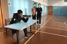 Ученики 8 класса совершенствуют технику выполнения нормативов ВФСК ГТО: прыжок в длину с места, подъем туловища из положения лёжа, наклон и стрельба из пневматической винтовки.