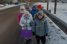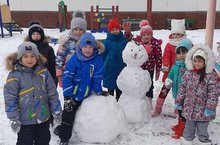 Как только выпал снег наши воспитанники решили слепить первого снеговика.