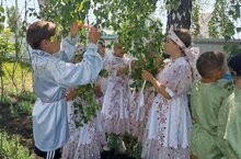 Восьмой день в пришкольном оздоровительном лагере орлята отметили день русской березки. Дети загадывали желание, завязывали ленты на ветках березы.