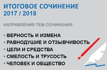 Советом по вопросам проведения итогового сочинения в выпускных классах определены 5 открытых направлений тем итогового сочинения в 2017/18 учебном году.