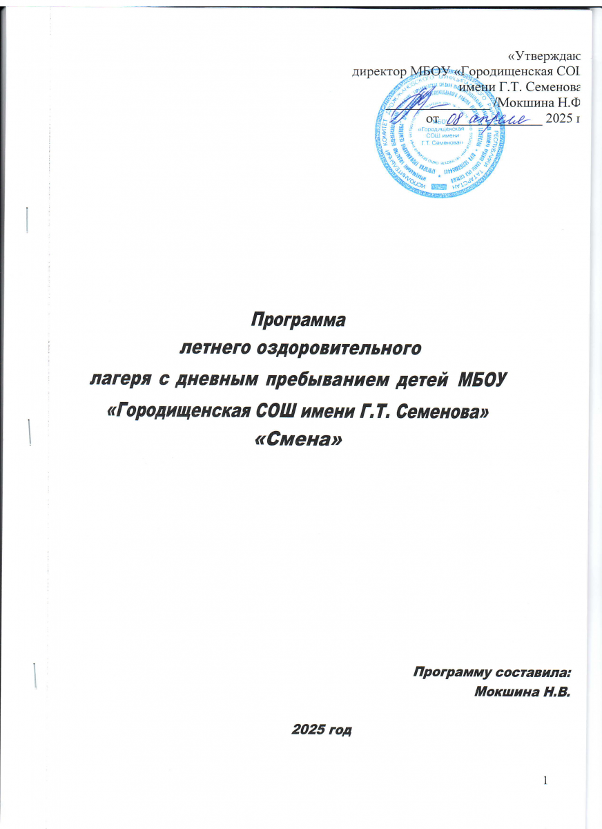 Начальник лагеря — Мокшина Надежда Валерьевна - заместитель директора по воспитательной работе