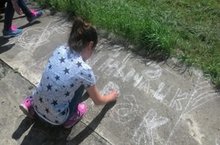 В лагере «Планета» проводился конкурс рисунков на асфальте «Нам нужен мир!»