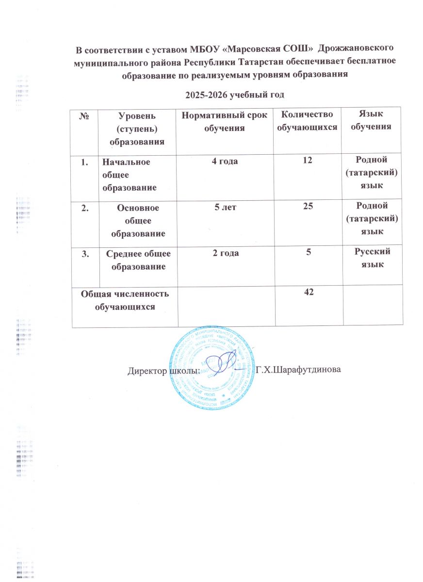МБОУ «Марсовская средняя общеобразовательная школа» Дрожжановского муниципального района РТ