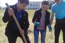 Ребята, организовавшись в группы, получили необходимый инвентарь (лопаты, вёдра), саженцы и прошли инструктаж по их посадке.Дети работали с большим энтузиазмом. Сама посадка и поливка деревьев заняла немного времени. Некоторые даже пожаловались, что не успели, как следует, насладиться процессом. Но удовольствие получили все без исключения. Не только мальчики, но и девочки и саженцы поливали, и ловко управлялись с лопатой.
