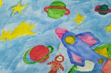Ко дню Космонавтики во 2-ой младшей группе нарисовали Космос. Беседовали про первого космонавта Юрия Гагарина.