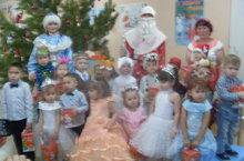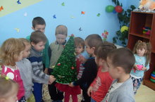 Сегодня снова праздник. Старый новый год и нам всем очень весело. Мы все вместе играли , пели песни, читали стихи про новый год. Вышли к елке которая растет в саду. Спели песню по елочку.