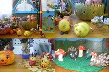 В нашем детском саду, стало традицией осенью проводить выставки совместных работ. Осень – это время так же и для творчества. Мы предложили родителям совместно с детьми сделать красивые и необычные осенние поделки из природных материалов. Целью проведения выставки «Осень золотая», стало желание развивать совместное творчество детей и родителей, побуждать к активному участию в жизни детского сада. Темы работ не обговаривались с родителями заранее, и что именно показать на выставке каждый решал сам. А кто из взрослых колебался в выборе темы, тому помогали их дети.