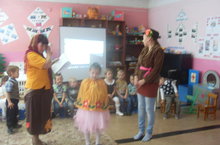 Сегодня у нас прошел утренник: "Осенний бал". Дети разсказывали стихи, пели песни, танцевали, играли различные игры.На празднике присутствовали и родители.