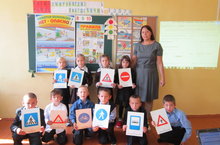 Учитель Галина Николаевна с учащимися первого класса с участием учителя ОБЖ и зам. дир. по восп. работе проводила внеклассное мероприятие по изучению ПДД. Используя презентацию рассказала как безопасно вести себя на дороге и почему надо знать знаки ПДД.
