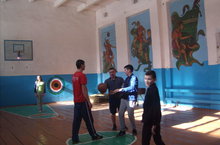 Вчера в честь праздника – международного женского дня в школе состоялся баскетбольный матч между учителями и сборной учеников 7, 9 классов.