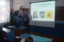 Люди с ограниченными возможностями нуждаются в помощи и поддержке здоровых людей. Ведь многие становится инвалидами по трагической случайности. И поэтому для 2-4 классов под руководством в этот день была показана презентация на тему « 3 декабря – международный день инвалидов»