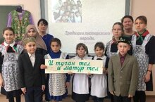 Татар халкының борынгы гореф - гадәтләре, йолалары һәм милли бәйрәмнәре аша балаларда үз халкы белән горурлану хисе тәрбияләү һәм аларның Татарстан халыклары тормышындагы ролен ачу максатыннан, туган тел атналыгы кысаларында "Халкым минем" исеме астында 1-7 нче сыйныф укучылары белән презентация кулланып, әңгәмә үткәрелде.