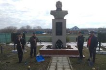 Сегодня силами коллектива во главе с директором школы совместно с обучающимися была очищена территория памятника Героя Советского Союза Алимова Зарифа Закировича.
