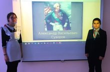 В честь 290-летия Суворова А.В. в школе прошли различные мероприятия. Учитель истории Закиров И.З. провел тематические уроки, где рассмотрели со старшеклассниками жизнь и воинские достижения А.В. Суворова, определили, как его победы повышали военное и политическое влияние Российского государства в мире. Учитель истории в своем выступлении познакомил ребят с воинским искусством А.В. Суворова. На примере отдельных сражений ученики рассмотрели стратегию и тактику, которые применял полководец. Также учитель рассказал ребятам, в чем заключалась идея учения Суворова – сформировать у офицеров и нижних чинов русской армии общечеловеческие и военные качества, которые необходимы для защитника Отечества, а также соблюдать уважительное, но вместе с тем строгое отношение к солдату.